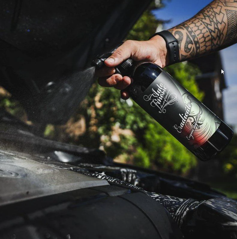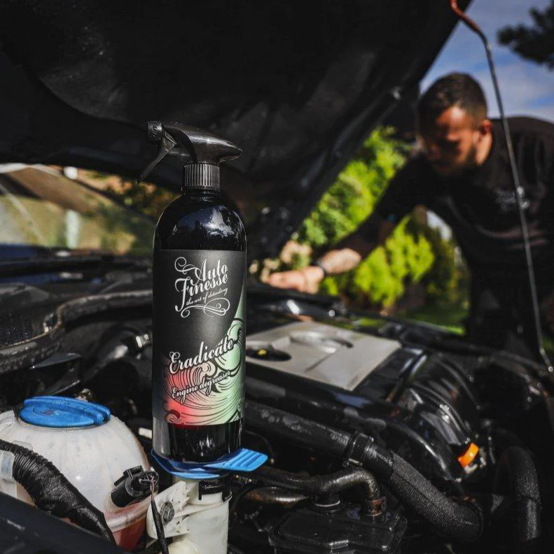 Az Auto Finesse Eradicate Engine Degreaser egy 1 l térfogatú mélytisztító a motorokhoz és a motorterekhez.Az Eradicate a zsíros és ráégett út szennyeződéseinek hatékony mélytisztítására lett kifejlesztve, amely gyakorlatilag az egész autón csak a motorháztető alatt található. . Az Eradicate egy erősen habzó zsíroldó, amely minden felületen használható, mint például fém, műanyag, gumi, festék, stb. Tisztítóképessége miatt kiválóan alkalmas kerékvetők vagy ajtók mögötti területek tisztítására is. Mint minden Auto Finesse termék, az Eradicate is egy professzionális termék, amelyet tapasztalt részletezőknek terveztek. Nagy hatékonyságának és könnyű felvitelének köszönhetően még egy kezdő is nagyszerű eredményeket érhet el ezzel a termékkel.