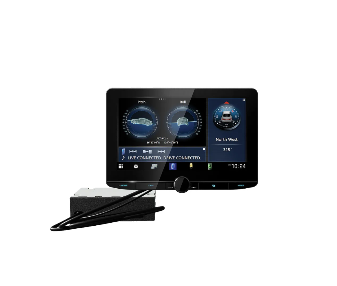10,1"-es, szabadon dönthető kijelző, vezeték nélküli Apple CarPlay és Android Auto, vezeték nélküli tükrözés, 4 bemenet 360°-os kamerához, hangerőszabályzó görgővel