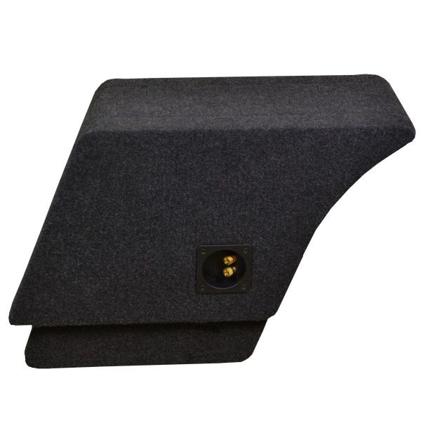 - A mélyláda doboz fekete szőnyeggel van borítva, és a kábelek csatlakoztatására szolgáló terminállal van ellátva.