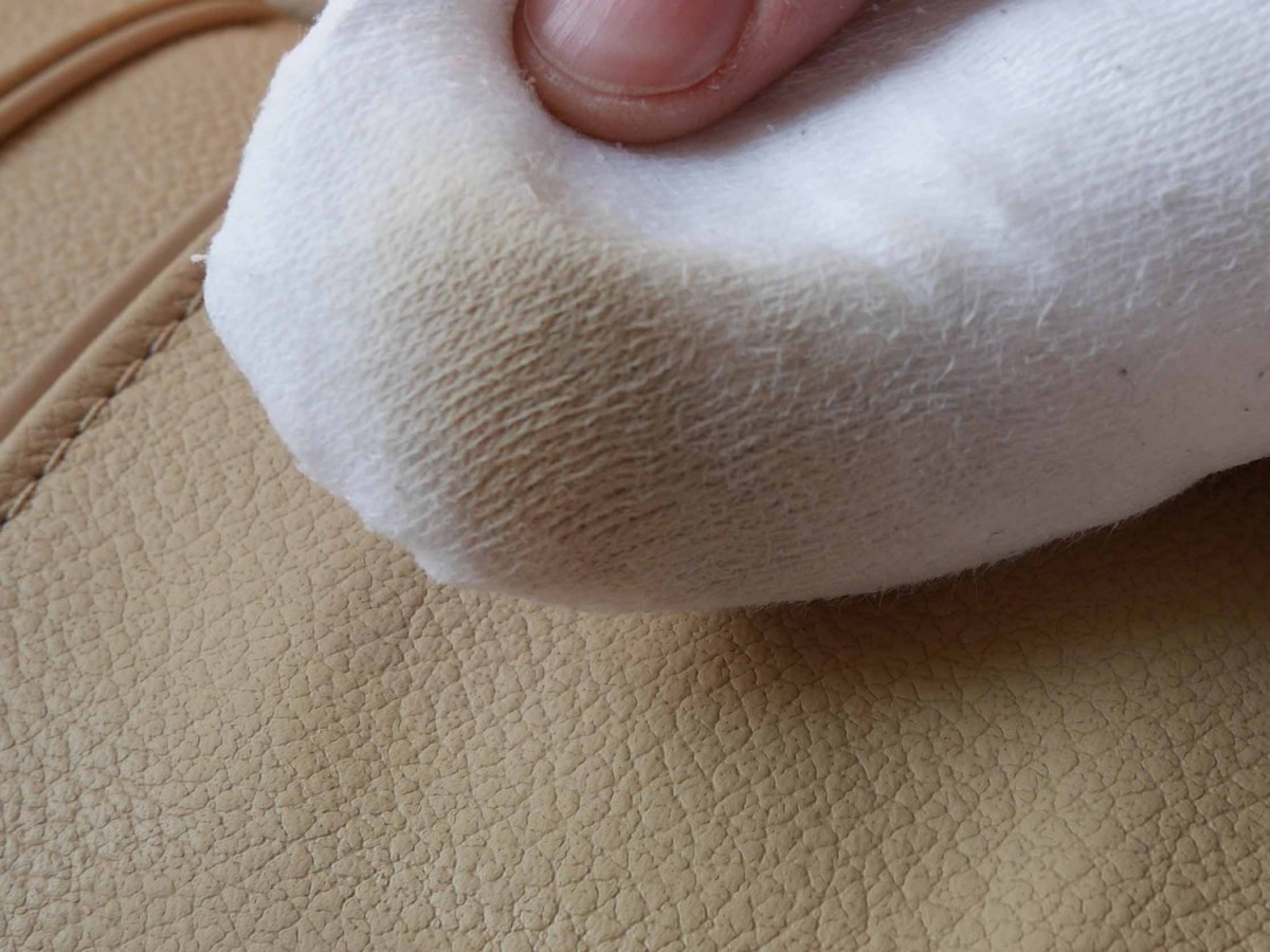 - Ha a tisztítást elérte, vagy a ruhán megjelenik a szín, és a bőr kissé ragacsossá válik, hagyja abba a tisztítást!