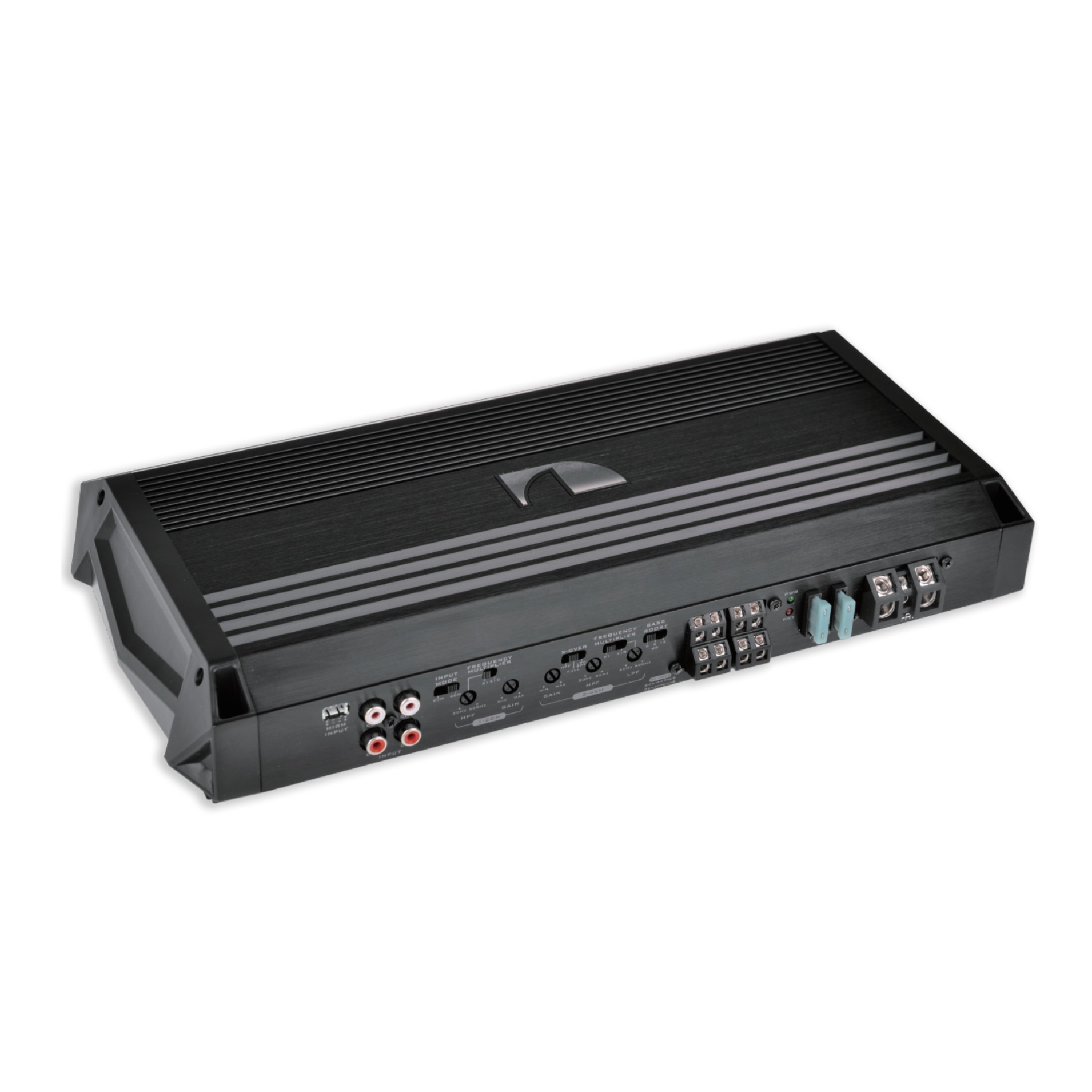 A négycsatornás NGO-A100.4 erősítő a Nakamichi analóg erősítőinek új modellsorozatába tartozik, amely első pillantásra lenyűgözi kifinomult, modern kialakításával, az egyik oldalon található vezérlőelemekkel és csatlakozási csatlakozókkal. Az erősítő váza a hőt tökéletesen elvezető alumínium és a kiváló minőségű ütésálló polikarbonát kombinációjából készült. Az NGO sorozatú erősítőket úgy tervezték, hogy kristálytiszta hangzást biztosítsanak a hangszórók és mélynyomók számára, maximális hatékonysággal és alacsony torzítással. A karcsú, fekete színű kialakítás az összes kezelőszervvel az egyik oldalon nemcsak jól néz ki, hanem a telepítést is megkönnyíti. Az erősítőn nemcsak az erősítés, a sávszűrő vagy a basszuserősítés beállításait találja, hanem RCA bemeneteket is a főegységhez való csatlakozáshoz és a jól kidolgozott cső terminálokat. Ha a rádiója nem rendelkezik RCA-kimenetekkel, az erősítő a magas szintű bemeneten keresztül is csatlakoztatható, amely az erősítő automatikus be- és kikapcsolását is lehetővé teszi.A Nakamichi NGO-A80.4 erősítő fő tulajdonságai