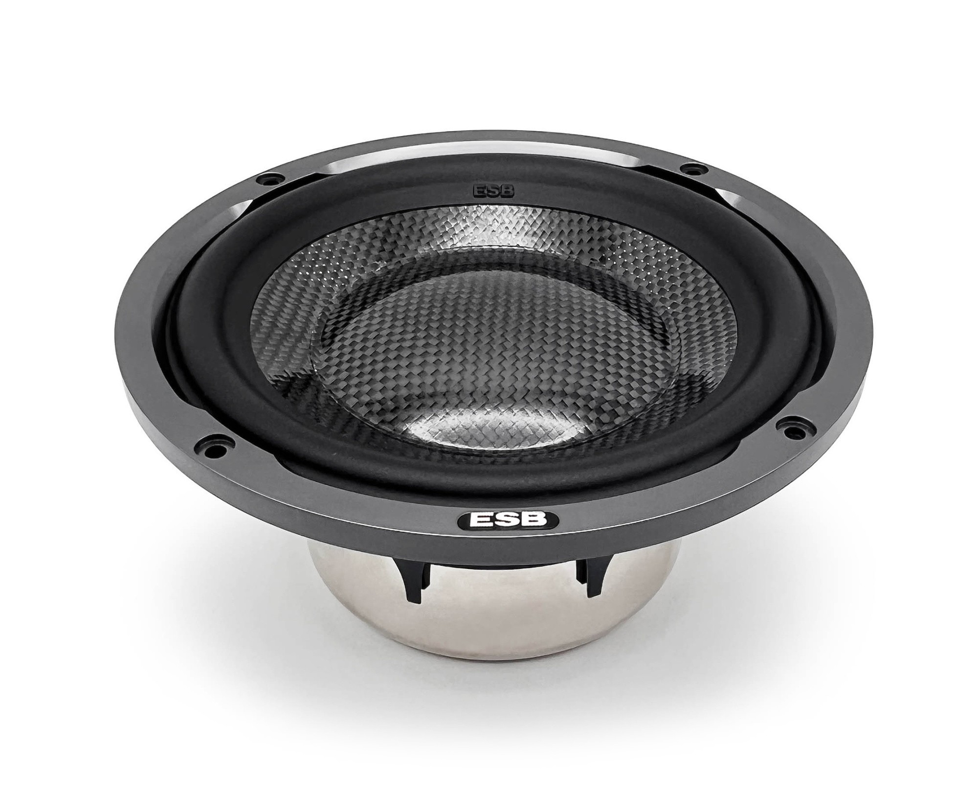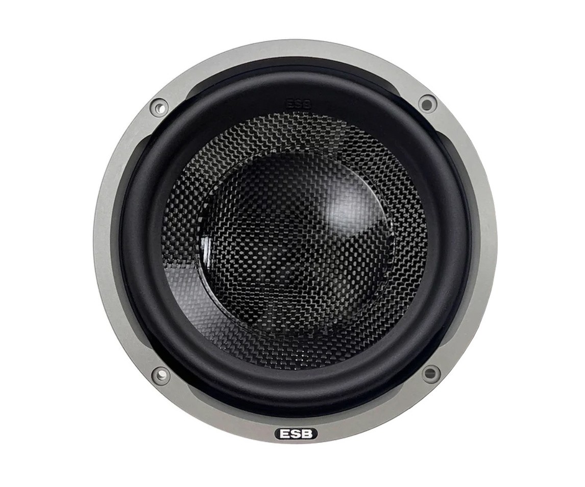 Az ESB Audio 9.6W-os hangszórók első pillantásra szemet szúrnak szerény formatervezésükkel, amelyet a szénszálas membrán, a gyönyörű virágos kosár és az opcionális CNC megmunkált alumínium rács vezet. A membrán vákuumban és autoklávban préselt, nagy szilárdságú szénből készült, M+F öntött modullal. Ez biztosítja a szénszálak tökéletes geometriáját és egymáshoz való tapadását, így egy rendkívül merev, nagyon magas hangátviteli képességű, ugyanakkor kiváló belső csillapítású anyagot kapunk. És mindezt nagyon alacsony tömeg és állandó teljesítmény mellett, mivel a karbon érzéketlen a páratartalom és a hőmérséklet változására. A membránhoz tartozik egy szintén szénszálból készült porvédő sapka, így alkotva egy tökéletes egységet. Az alkalmazott nagyméretű tekercsnél a porvédő sapka alakja, súlya és merevsége döntő fontosságú a mély, gyors és dinamikus basszus megszólaltatásához. Az NBL gumifelfüggesztés formája úgy lett kialakítva, hogy nagyon sima, alacsony csuklós mozgást biztosítson, amely a határértékhez közeledve egyre kontrolláltabbá válik. Ez is hozzájárul ahhoz, hogy ez a hangszóró rendkívül dinamikus és nagy teljesítményt képes kezelni. Szintén említésre méltó a hangszóró porszórt, öntött alumínium kosara, amely nagyon kis ellenállást fejt ki a levegő áthaladásával szemben, alakja pedig csökkenti a rezgéseket és a rezonanciát. A rendkívül nagyméretű hangtekercs a kategóriájában az egyik legnagyobb teljesítményt biztosítja, és felülmúlhatatlan teljesítményt és hangszóródinamikát garantál. Ennek a hangtekercsnek a kialakítása lehetővé teszi, hogy a hangkeltés nagy részében teljesen a mágneses mezőbe merüljön, így minimálisra csökkentve a torzítást. A hangtekercs elülső része szellőzőnyílásokkal ellátott alumíniumból készült, és a hő jobb elvezetése érdekében fekete eloxált. Az alulbeállított hangtekercs tekercselési hossza rövidebb, mint a mágneses rés magassága, ami alacsonyabb gerjesztésnél kisebb torzítást és a hangtekercs mozgásának pontosabb vezérlését teszi lehetővé. A nagyméretű és nagyon erős neodímium mágnes ellenáll a magas hőmérsékletnek, és lehetővé teszi a mágneses motor méretének és térfogatának jelentős csökkentését. Egy ferritmágnessel egyenértékű mágneses erő nagyobb alapterületet igényelne, mint az egész hangszóró. A numerikusan vezérelt géppel, nem pedig préseléssel előállított póluslemez nagymértékben csökkenti a tervezési tűréseket a teljesítmény javára. Egy sor csatorna juttatja be a hűtőlevegőt, növelve a mélysugárzó teljesítményét és élettartamát.Az ESB Audio 9.6W-os középsugárzók főbb jellemzői