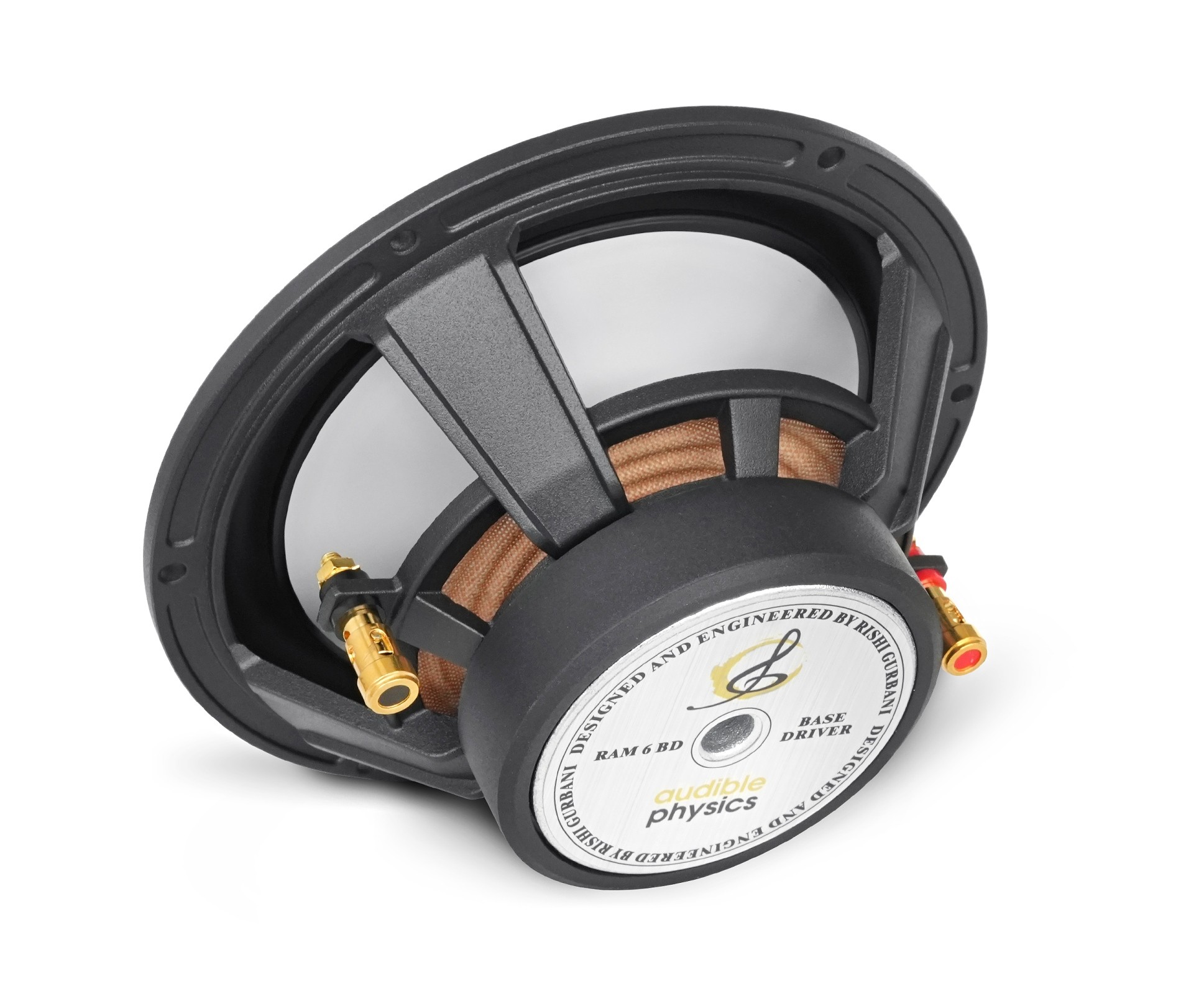 Az Audible Physics RAM 6 BD középsugárzókat a hagyományos fehér membrán uralja, rézszínű kupolával. A középsugárzó membránja egy szabadalmaztatott Matrix Alloy Dome anyagból készült, amely magnézium-alumínium ötvözetből készül. Ez a kombináció kiváló merevséggel, rezgéscsillapító képességgel és példás könnyedséggel rendelkezik. Ez lehetővé teszi a mély és lenyűgöző basszusok reprodukálását a tiszta és pontos középfrekvenciák megtartása mellett. Szintén említésre méltó a példásan lapos középfrekvenciás válasz, amely az Audible Physics hangszórók egyik közös jellemzője. A tartós zsanér minimalizálja a 25 mm-es hangtekercs és a robusztus 80 x 15 mm-es ferritmágnes érintkezését okozó mozgásokat. A hangszóró speciálisan kialakított öntött kosara kivételesen merev, kiküszöböli a rezgéseket, és nem deformálódik annyira, amikor a membrán mozog, mint a hagyományos acélkosarak esetében. Emellett nem csökkenti a mágneses mezőt, és sokkal hatékonyabban vezeti el a hőt a hangtekercsből. A kosár masszív kábelcsatlakozókkal is rendelkezik, amelyeket a klasszikus mélysugárzókon szoktunk látni.