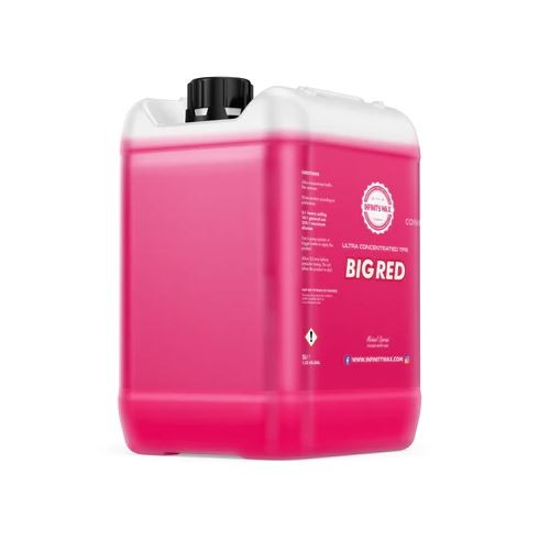 A Big Red egy rendkívül hatékony film- és útszínezék-eltávolító, amelyet ultrakoncentrátumként szállítanak. 5 liter termékből hígítva 200 liter kész oldatot lehet előállítani, amelyet azután egy injektáló rendszeren keresztül kell vezetni, vagy kézi permetezővel, pumpás, hóhabos stb. felszereléssel kell kijuttatni. A Big Red környezetbarát anyagból készült és 89%-ban biológiailag lebomló. Hígítva nem korrodáló vagy maró hatású, és a legtöbb anyaghoz biztonságos, kivéve a kezeletlen vagy festetlen nyers fémeket és az alumíniumot. A Big Red lehetővé teszi, hogy lényegében egy „200 gallonos tisztítószerhordót” bárhová szállítson, 5 gallonos, ultrakoncentrált formában, ahol aztán a helyszínen vizet ad hozzá a végtermék elkészítéséhez. Használja az előmosási folyamat részeként az erős útszennyeződések, só, homok és közlekedési filmrétegek eltávolítására. A Big Red-et előöblítés nélkül kell a járműre fújni, legfeljebb 5 percig hagyni, majd víznyomással leöblíteni, hogy a látható szennyeződések akár 95%-át eltávolítsa. Alternatív megoldásként habrendszerrel és ecsettel együtt is használható, ami különösen hatékony az oldalsó lemezek és nagyobb járművek esetében, ahol hosszabb felhordási időre van szükség.Fő tulajdonságok