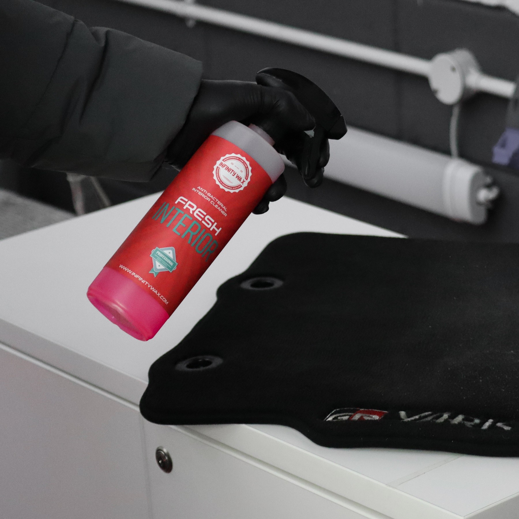 A Fresh Interior egy rendkívül hatékony lúgos belső tisztítószer, amely tisztán vagy hígítva is használható. Rendkívül hatékony a szövet ülések tisztítására a foltok eltávolítására, szőnyegek tisztítására, valamint a műanyag és vinil műszerfalak vagy kárpitok tisztítására. (A Fresh Interior azonban nem ajánlott bőrön, velúrbőrön vagy Alcantarán való használatra!) Ez a vízbázisú tisztítószer lúgos kémia segítségével biztosítja kivételes tisztítóerejét, miközben eltávolítja a leggyakoribb baktériumtípusokat. A tesztek során a Fresh Interior a baktériumok 89,6%-ával szemben volt hatékony (ISO 22196), és a gyakori baktériumtörzsek, például a Staphylococcus aureus és az Escherichia coli ellen is rendkívül hatásos. (Az antibakteriális teljesítmény változhat, ha a terméket hígítják.) A Fresh Interior spray flakonban vagy ecsettel használható. Ecsetben történő használat esetén a Fresh Interior hihetetlenül nagy hígítási arányban (1:100 - 1:200) használható professzionális eredmények eléréséhez. A Fresh használható önálló karbantartó termékként gyors áttörléshez vagy mélytisztításhoz. Mivel nem tartalmaz hozzáadott illatanyagot és nem hagy illatanyagot, Ön döntheti el, hogy milyen légfrissítőt használ utána.Fő tulajdonságok