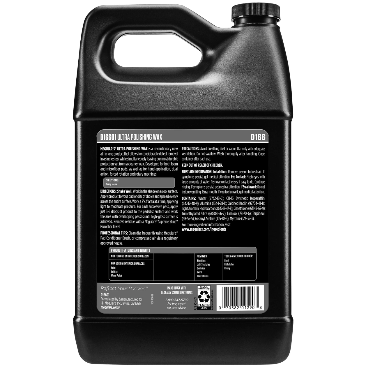 - Szintetikus polimerek, szilikonok és karnaubaviasz tartós keveréke a fantasztikus hidrofób védelemért.