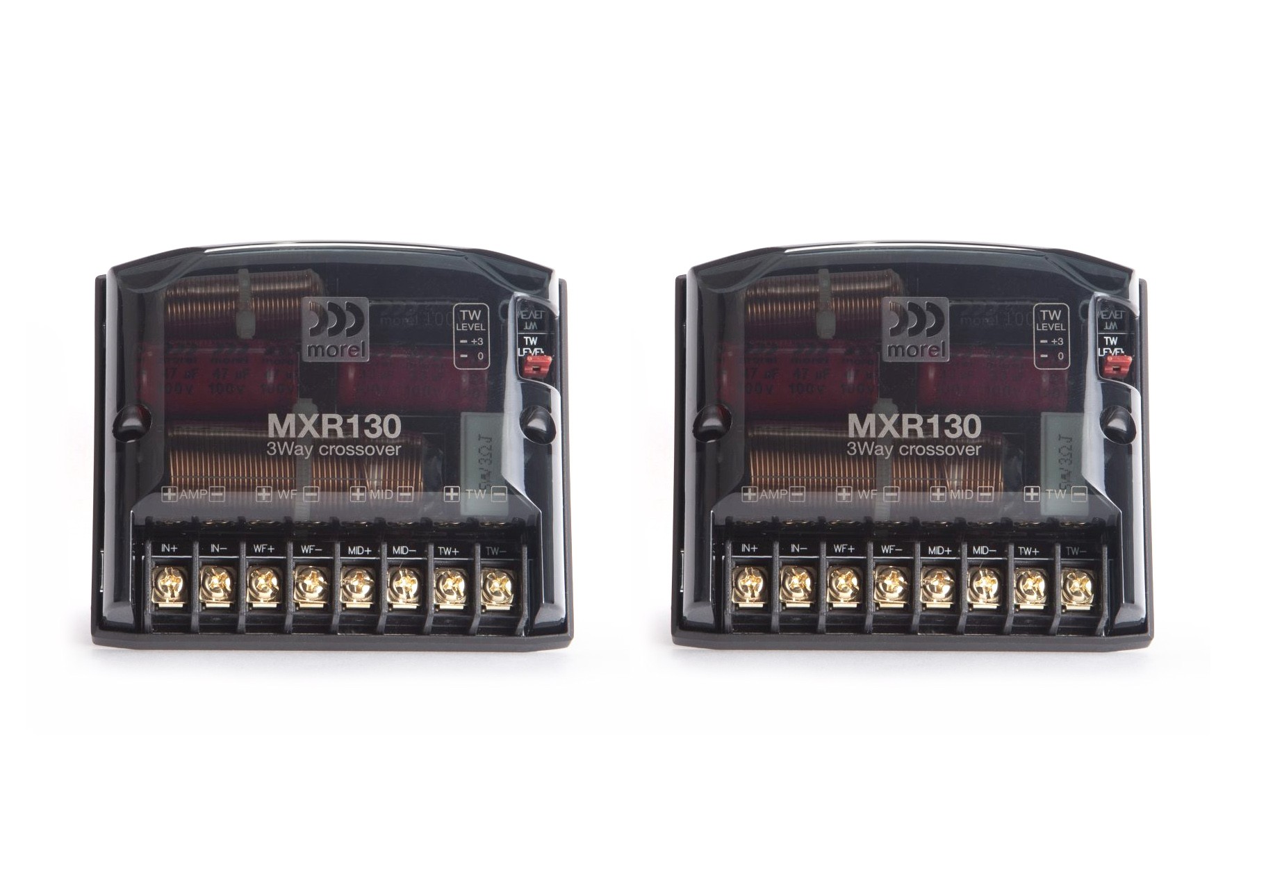 A Morel MXR130 háromutas váltók a Virtus és Maximo Ultra sorozatból teljes integrációt kínálnak a komponensek számára, gondosan hangolt akusztikai paraméterekkel a magassugárzók, középsugárzók és mélysugárzók számára. A Morel MXR130 váltók számos új koncepciót és funkciót ötvöznek, amelyek javítják a Morel rendszerek hangzását és hangminőségét.- 450Hz/4500Hz LP/BP/HP