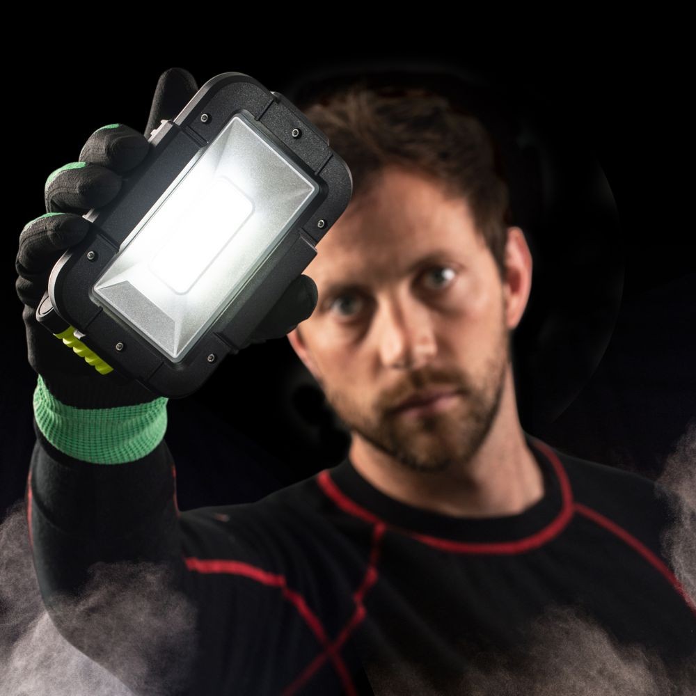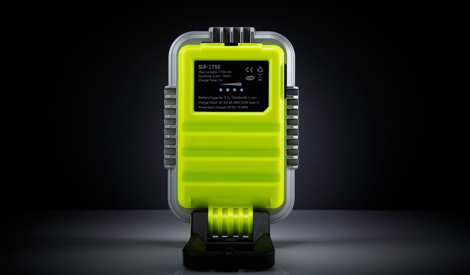 Az SLR-1750 egy kompakt, újratölthető munkalámpa 1750 lumen fénykibocsátással. A 180°-ban összecsukható állványhoz tartozik egy akasztóhorog/állvány és beépített mágnesek a fémfelületekre való rögzítéshez. A vészjelzéshez további piros LED-ek használhatók. A beépített akkumulátornak köszönhetően más eszközöket, például mobiltelefont is tölthet - úgynevezett power bank funkció. A lámpa rendkívül ellenálló a sérüléssel vagy töréssel szemben.
