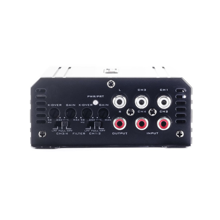 4 csatornás erősítő, 4 x 60 / 2 x 150 W RMS (4 Ω), 4 x 75 W RMS (2 Ω), D osztály