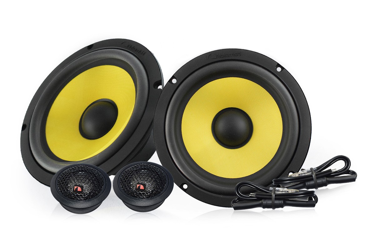 A Nakamichi új NSJ sorozata az alap NSE és NSF sorozat után hangzásilag fejlettebb koaxiális és komponens hangszórókat mutat be. Ezek is magasabb minőségű anyagokkal, példaértékű kivitelezéssel és érdekesebb dizájnnal rendelkeznek. A Nakamichi NSJ-CS610 komponens hangszórók üvegszálas kompozit középmembránnal rendelkeznek, amely első pillantásra feltűnik élénksárga kialakításával. Ez az anyagtípus nagy szilárdságáról ismert, miközben könnyű súlya megmarad. Szilárd basszusra és összességében kiegyensúlyozott hangzásra számíthat a mély- és középfrekvenciákon is. A tartós gumifüggesztés rugalmasságot és hosszú élettartamot biztosít kemény autós körülmények között. A magassugárzó esetében a Nakamichi a természetes és részletgazdag hangzás érdekében a jól bevált selyemre támaszkodott. A 25 mm átmérőjű kalotta a Nakamichi logóval ellátott, dizájnos házba van integrálva. Az NSJ-CS610 hangszórókat elsősorban a gyári autórádiókhoz tervezték a magas valós érzékenység, az optimális teljesítménykezelés és a 3 Ohmra csökkentett impedancia miatt. Az egyszerű beszerelést kompakt kapcsolók biztosítják - a magas hangszórók esetében a kábelen, a középsugárzók esetében pedig a kosárba integrált kapcsolók.