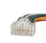 Kábelkötegek Pioneer autórádiókhoz, amelyeknek az autó oldalán egy speciális csatlakozó és egy ISO-csatlakozó található. A huzalok hossza általában 12-13 cm. A kábelek színkódolással és címkével is rendelkeznek.