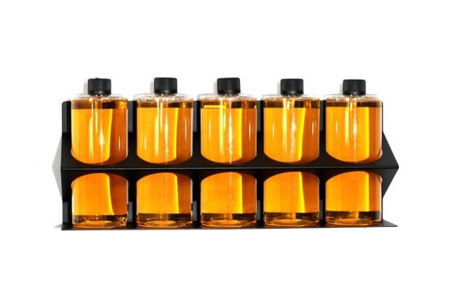 A Poka Premium Bottle Holder 1 l-ig egy professzionális palacktartó, amely falra szerelhető és a gyártó részletező kocsijaira is rögzíthető. A palacktartó legfeljebb 5, legfeljebb 1 literes palack tárolására alkalmas. Felépítésének köszönhetően nem csak falra szerelhető, hanem kiegészítő zsanérként moduláris lábakkal (többlyukú lábakkal) rendelkező Poka Premium részletező kocsira is felszerelhető. A négy rögzítési lyuknak köszönhetően a tartó ellenáll még a nehéz polírozópaszta-palackoknak is. Kiváló minőségű precízen vágott és hajlított acélból készült, amely végül porszórt bevonattal van ellátva a maximális oxidációs ellenállás érdekében.Fő tulajdonságok