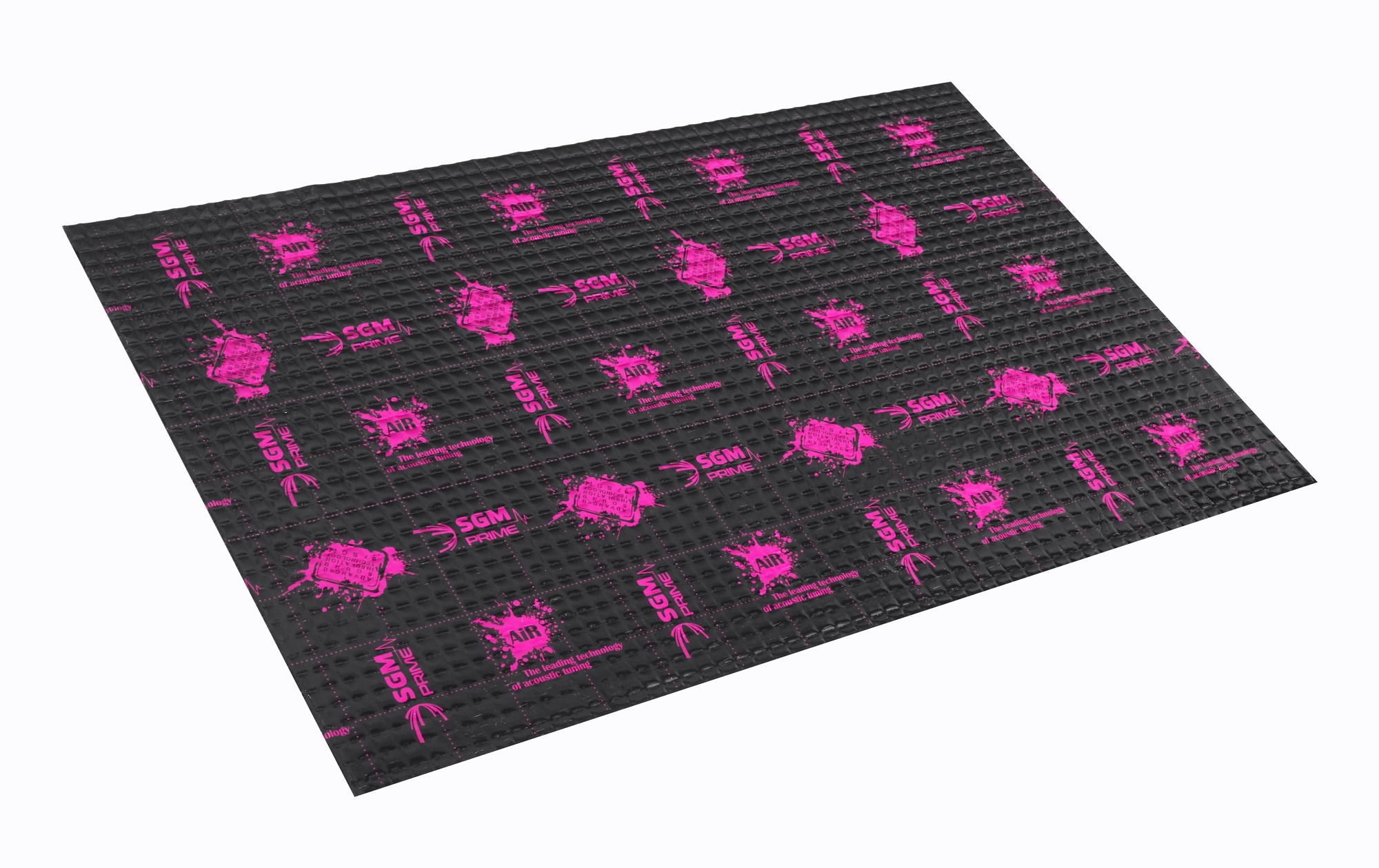 Prémium rezgéscsillapító anyag az SGM Prime termékcsalád csúcsmodelljéből, rendkívül alacsony súllyal. Ennek az egyedülálló rezgéscsillapító anyagnak a teljesen új gumikeverék-formulája lehetővé teszi a magas akusztikai veszteségtényező (MLF) és a stabilitás fenntartását széles hőmérsékleti tartományban, miközben nagyon alacsony súlyt tart fenn. A gumikeverék speciális összetétele biztosítja a magas tapadást és az anyag hatékonyságát, az SGM Air viszkoplasztikus szerkezete pedig nagyon hatékonyan csillapítja a test mikrorezgéseit. A 100 mikron vastagságú alumíniumfólia növeli az anyag szilárdságát és vázát, míg a szögletes dombornyomás és a modern nyomattal ellátott fekete fényezés bármely autóra felszerelve kitűnik. Az anyag természetesen víz- és olajálló, korróziógátló tulajdonságokkal rendelkezik, és minden évszakban megőrzi ugyanazokat a tulajdonságokat. Mint minden SGM rezgéscsillapító anyag, a Prime termékcsalád is ellenáll a víznek, a nedvességnek, az olajnak és a szélsőséges hőmérsékleteknek, valamint korróziógátló tulajdonságokkal rendelkezik.Az SGM Air 4 Prime rezgéscsillapító anyag fő jellemzői