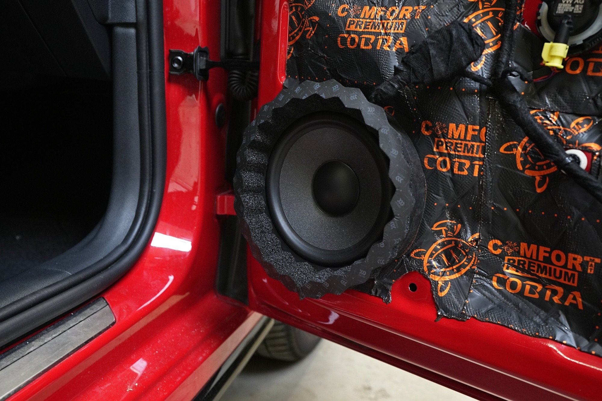 Készlet a hangszóró és az ajtópanel közötti tér lezárására + az állóhullámok megakadályozására a hangszóró mögött.