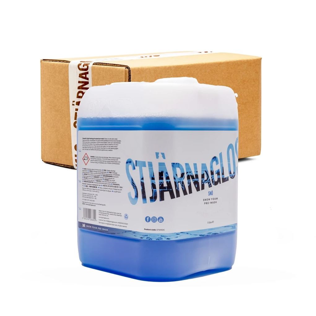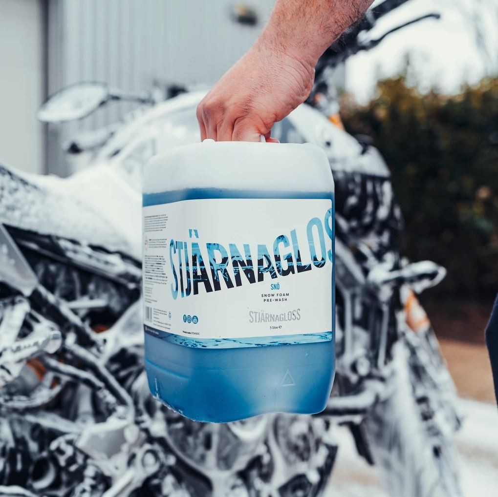 A Stjärnagloss Snö egy pH-semleges, magas koncentrációjú aktív hab. Alkalmazásakor sűrű habot képez, miközben kiváló tapadási és tisztítási képességet biztosít. A Stjärnagloss Snö habot úgy tervezték, hogy eltávolítsa a szokásos szennyeződéseket a fényezésről, hogy biztonságos érintkezési felületet hozzon létre az autómosáshoz. A habosító tartozékkal együtt szuperkoncentrált habkészítményt, maximális habsűrűséget és tapadást kap. A legjobb eredmény elérése érdekében alkalmazza professzionális habosító tartozékkal és egy 130 bar vagy annál nagyobb nyomásra képes magasnyomású mosóval.