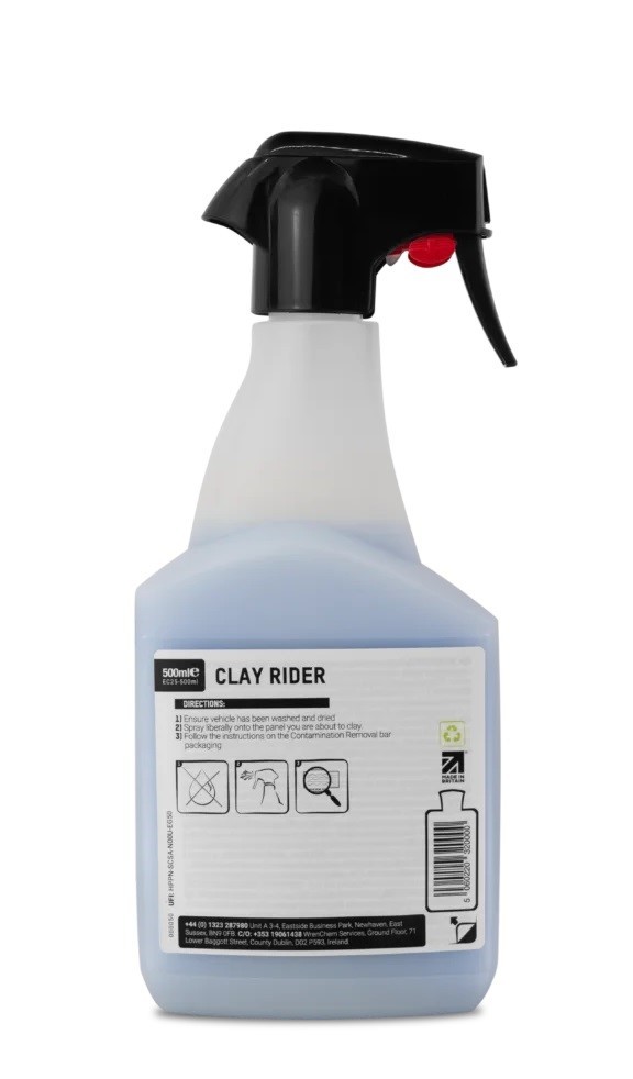 A ValetPro Clay Rider egy kenőanyag az agyaggal való munkához, amely biztosítja, hogy az agyag simán siklik a jármű festékén. Lehetővé teszi a szennyeződések kíméletes eltávolítását a festett felületről, miközben csökkenti a festék sérülésének kockázatát az agyag használata során. Segít tökéletesen előkészíteni a fényezést, ami elengedhetetlen a viasz vagy más védőrétegek felvitele előtt.Fő jellemzői
